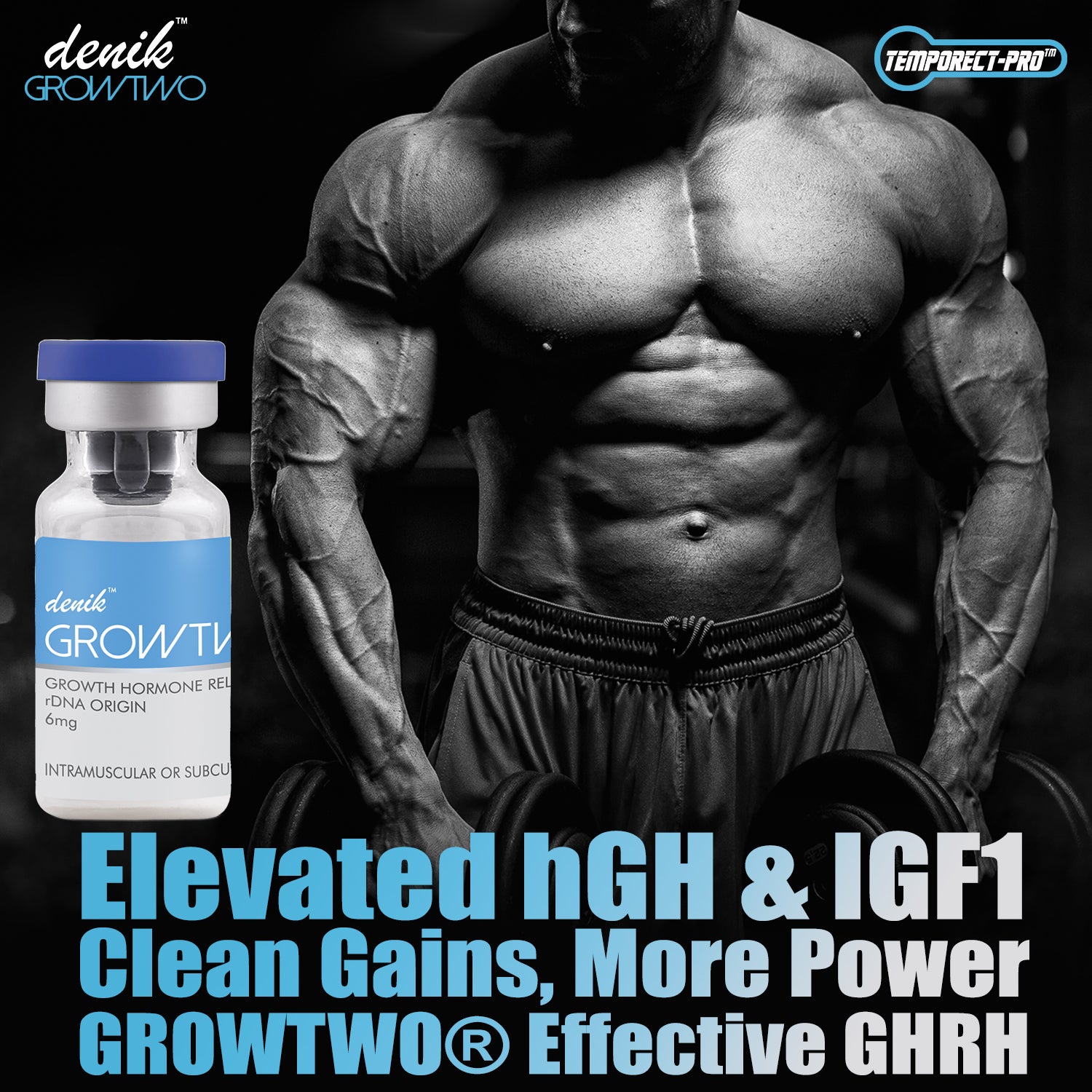 Skyrocket Muscle Growth: Potent, Safe and Stable GHRP-2 peptide, GROWTWO dramatically enhances muscle growth by increasing Growth Hormone and its supporting hormone IGF1.