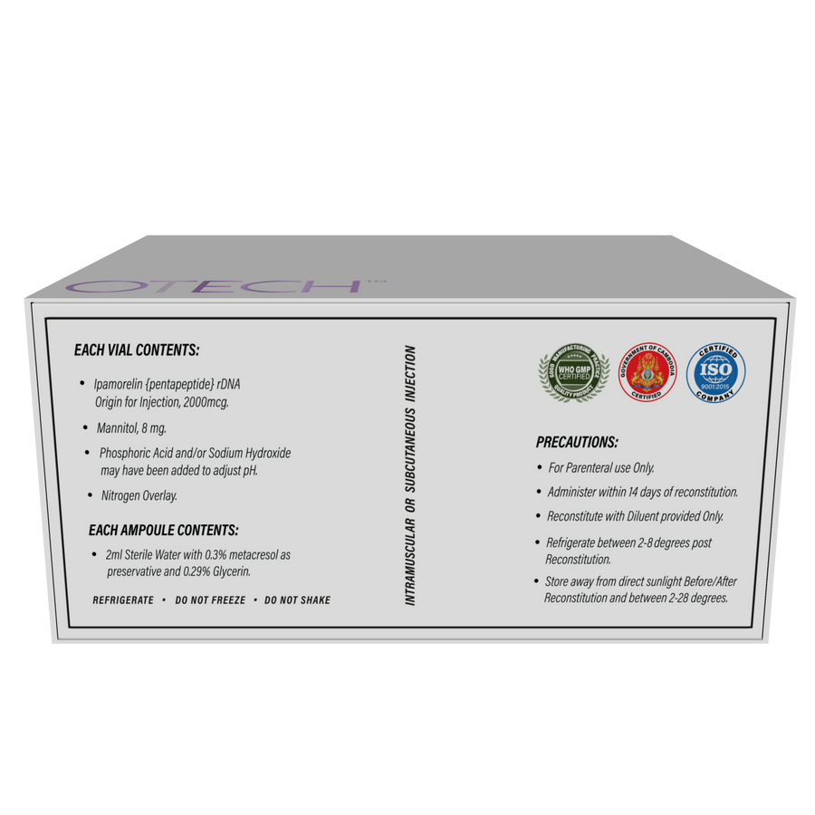 Please note: Avoid eating at least 45 mins pre and post IPAMOTECH injection, as increased Sugar levels in Blood in response to food may suppress Growth Hormone releasing effects of IPAMOTECH